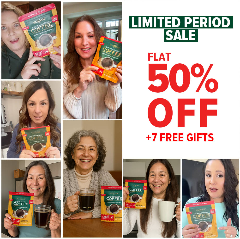 VAHDAM® Ashwagandha Coffee was formulated after listening to thousands of women struggling with stress eating, belly fat, and cravings that won’t stop.